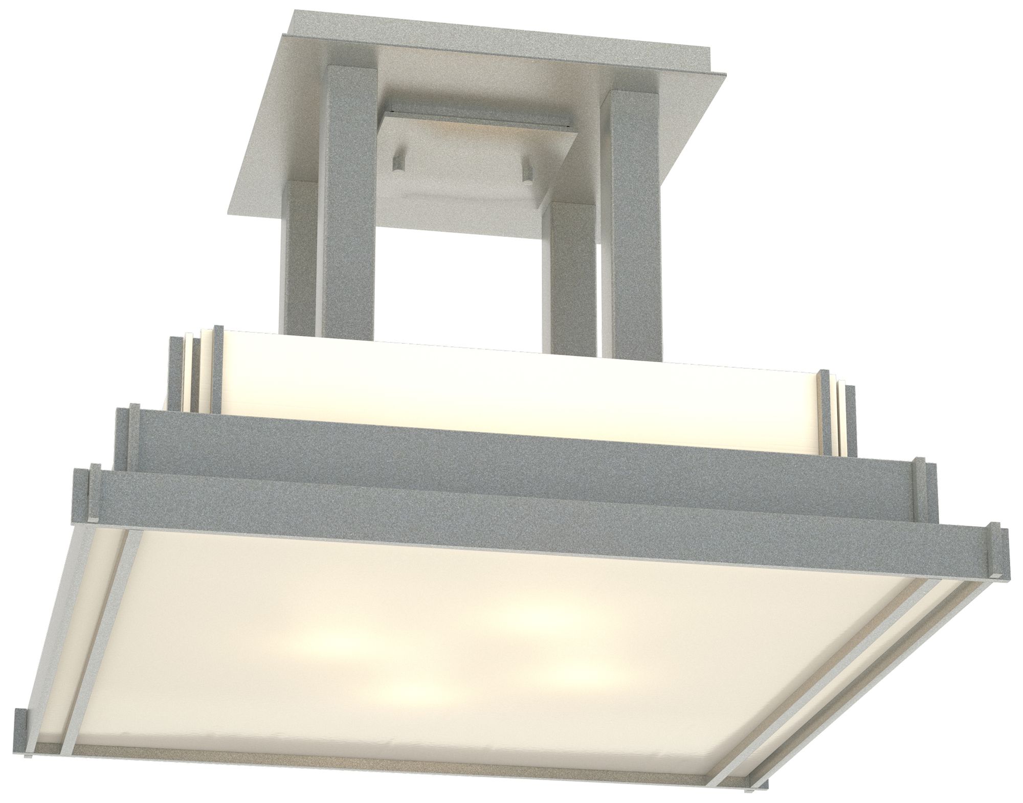 Steppe 17.1"W Large Vintage Platinum Semi-Flush With Ivory Art Glass S