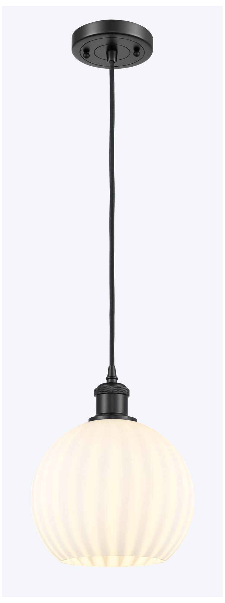 Ballston 8" Wide Matte Black Cord Hung Mini Pendant w/ White Venetian