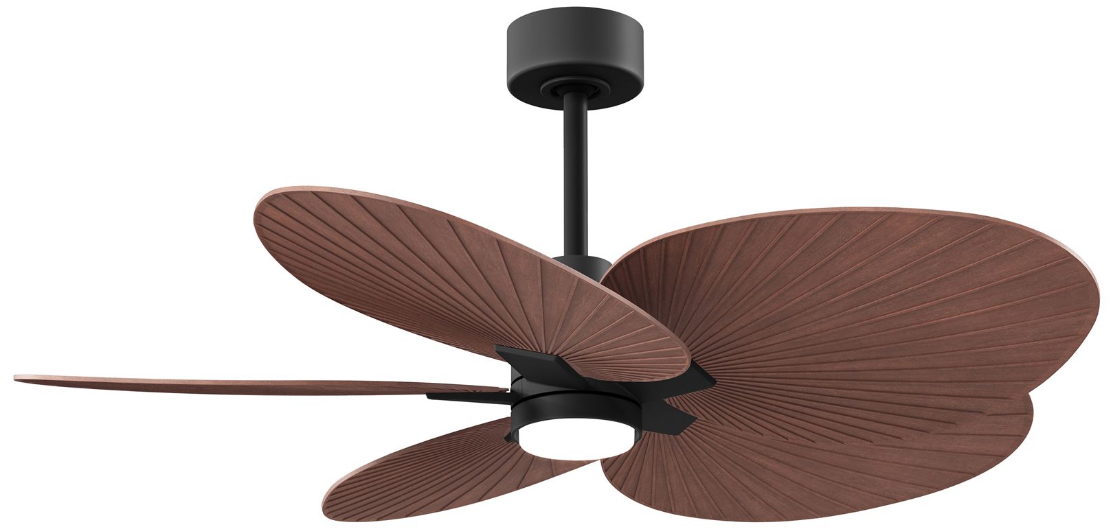 Alessandra Tropical 48" Matte Black LED Ceiling Fan w/ Walnut Blades