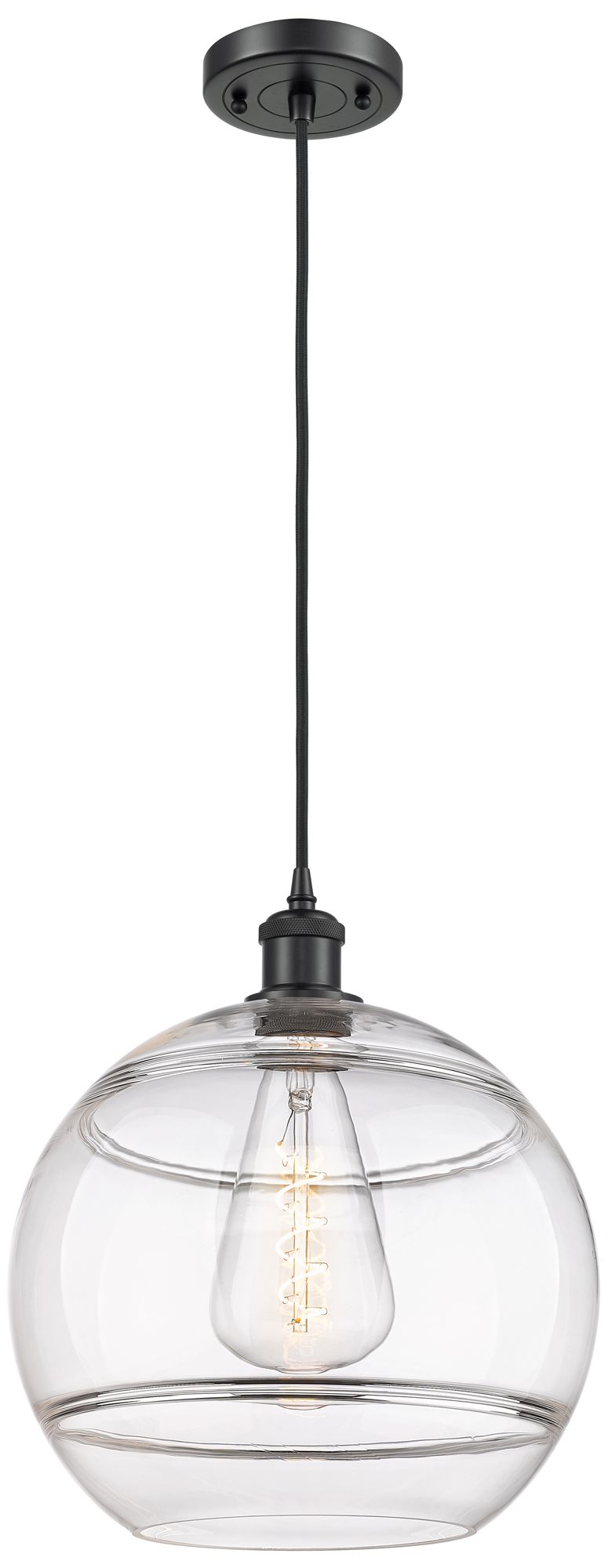 Ballston Rochester 12" Wide Matte Black Corded Mini Pendant w/ Clear S