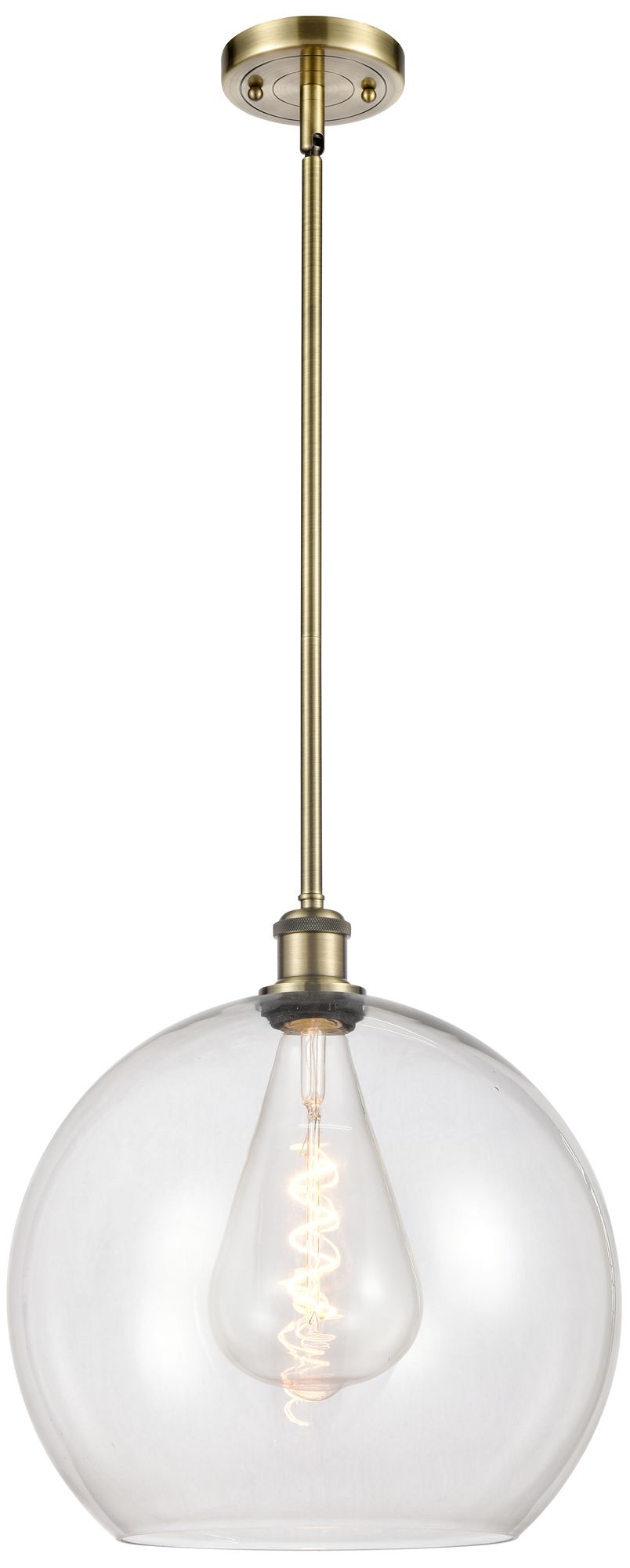 Athens 13.75" Wide Antique Brass Stem Hung Pendant w/ Clear Shade