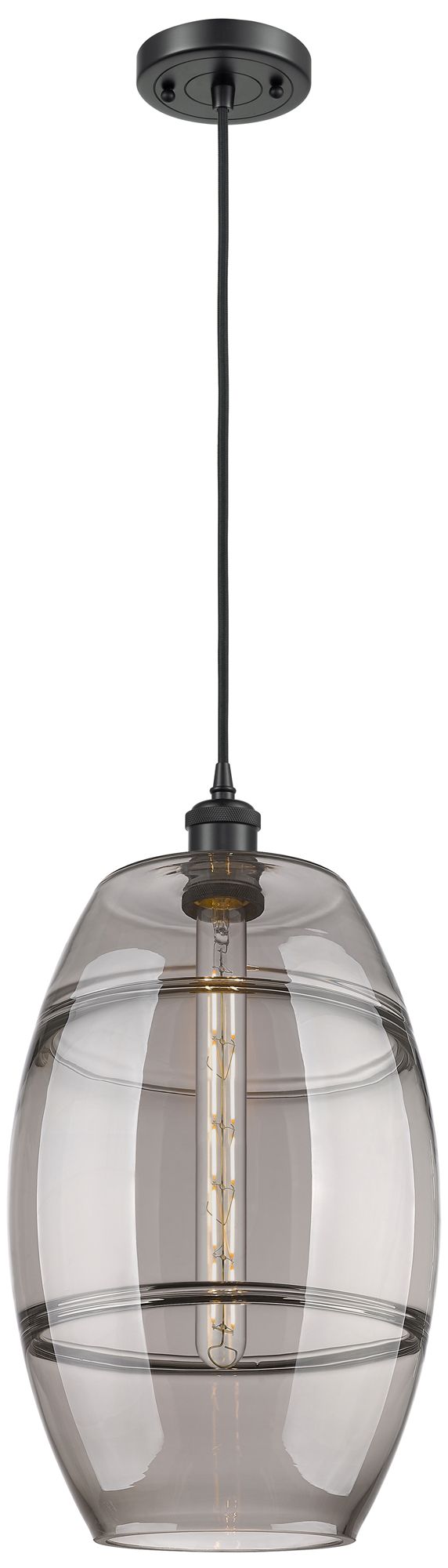 Ballston Vaz 10" Wide Matte Black Corded Mini Pendant w/ Light Smoke S