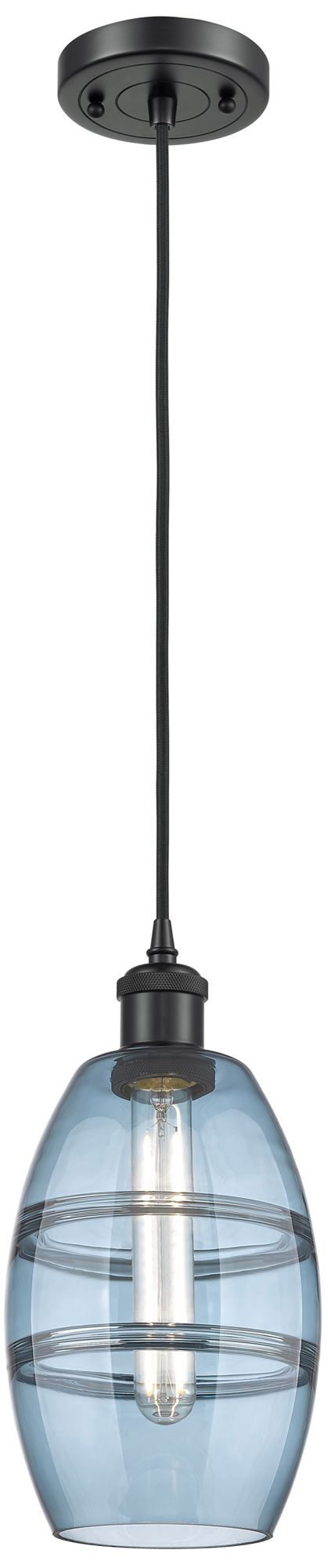 Ballston Vaz 5.88"W Matte Black Corded Mini Pendant w/ Princess Blue S