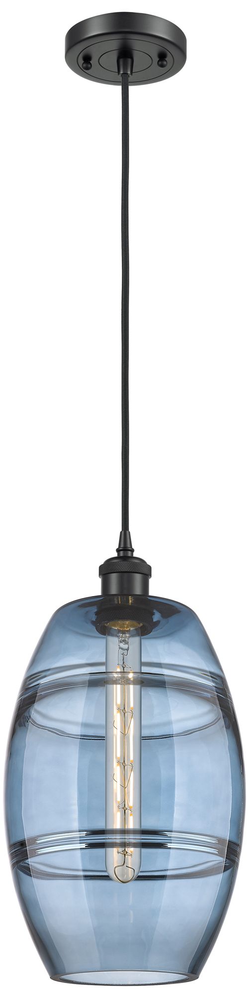 Ballston Vaz 8" Wide Matte Black Corded Mini Pendant w/ Princess Blue