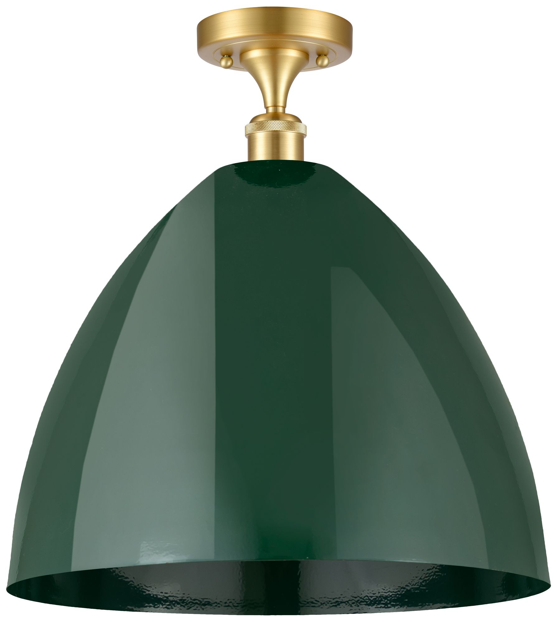 Plymouth Dome 16" Wide Satin Gold Semi Flush Mount w/ Green Shade