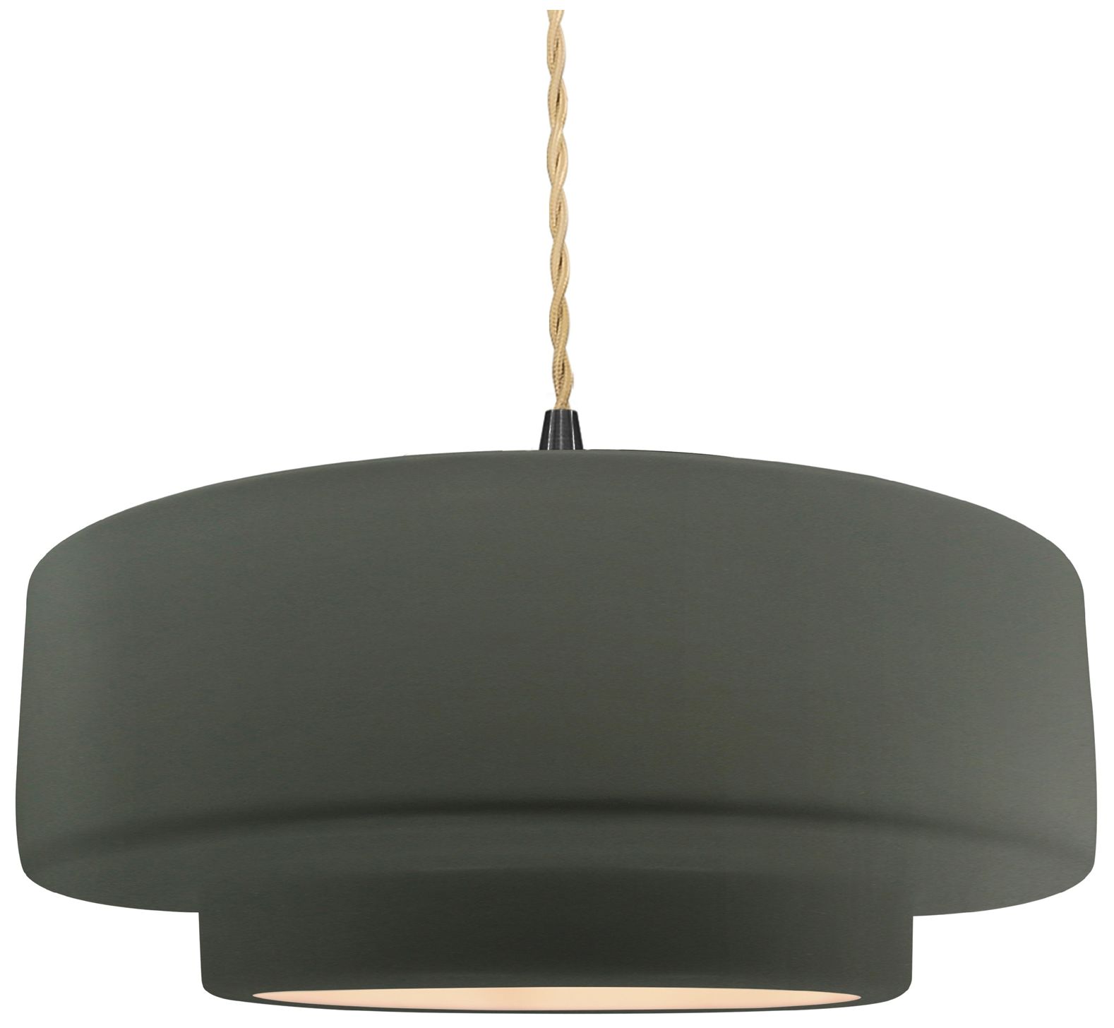16.25"W Pewter Green Frame Matte Black Large Tier Beige Twisted Pendan