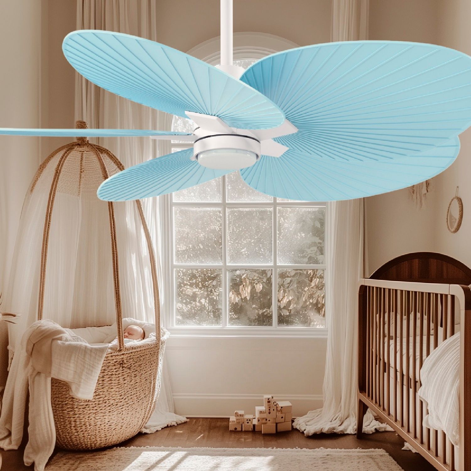 Alessandra Tropical 48"Matte White LED Ceiling Fan w/Light Blue Blades