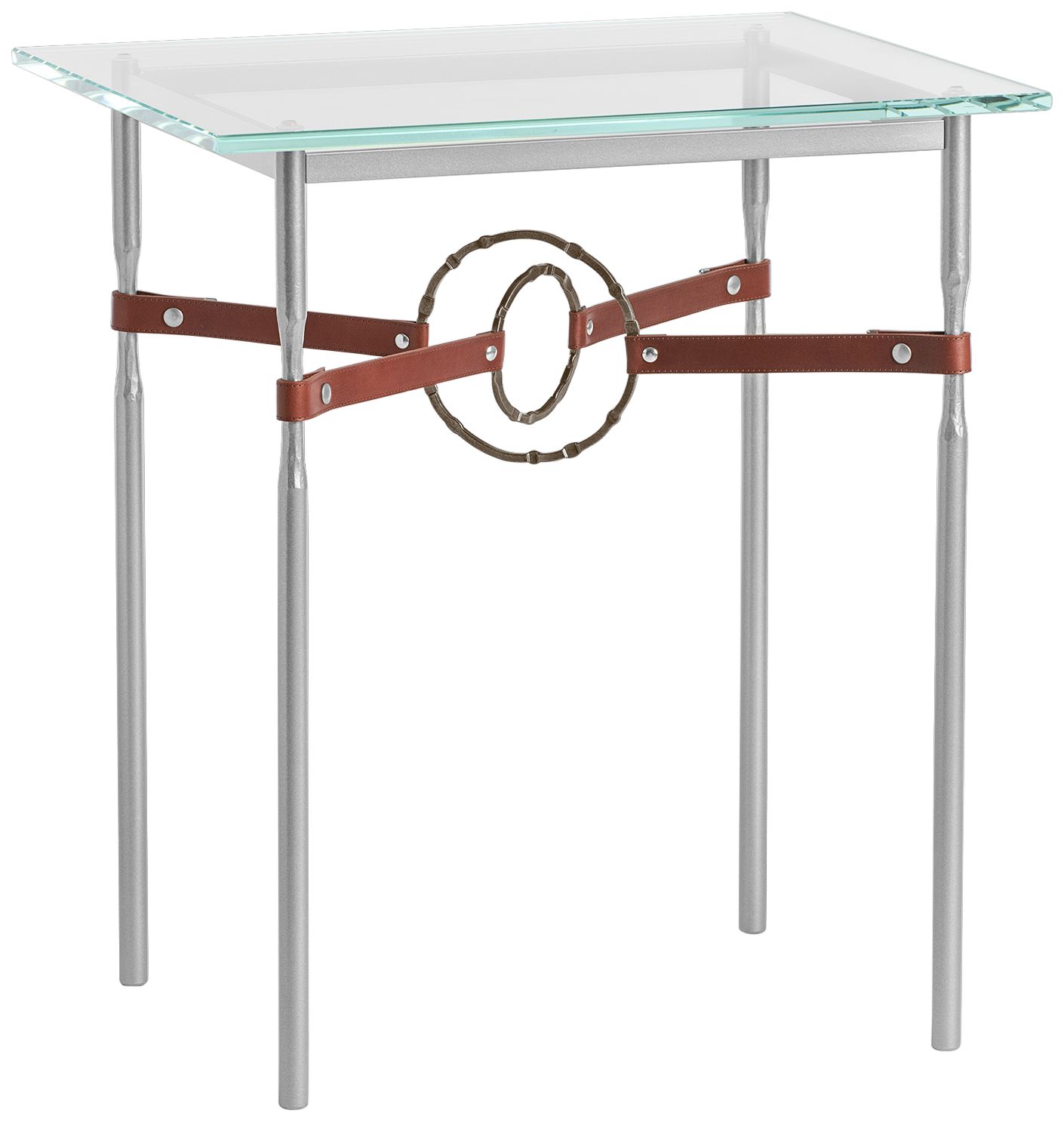 Equus 22"W Platinum Side Table with Bronze Ring Brown Strap