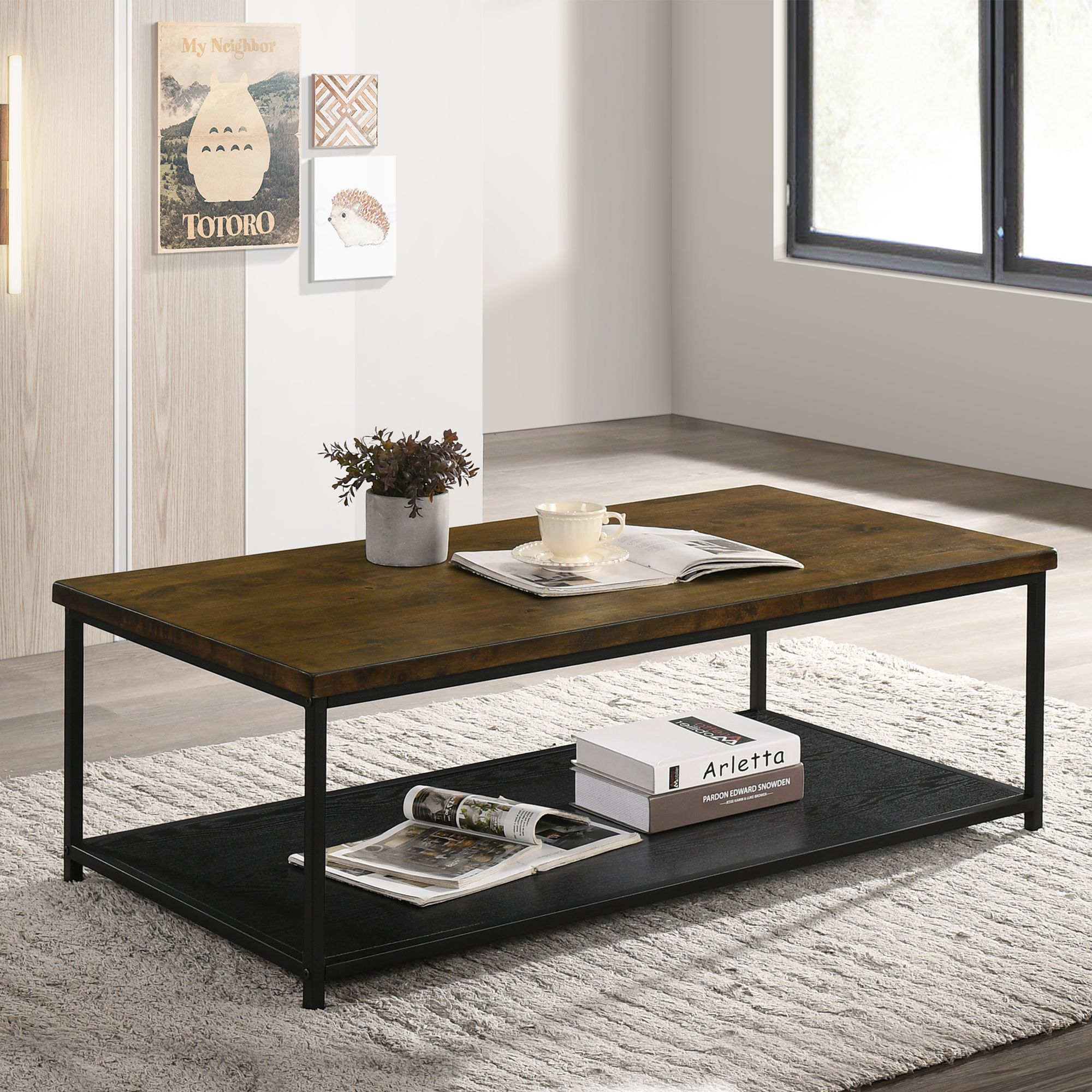 Hiverna 47 1/4"W Rustic Oak and Black 1-Shelf Coffee Table