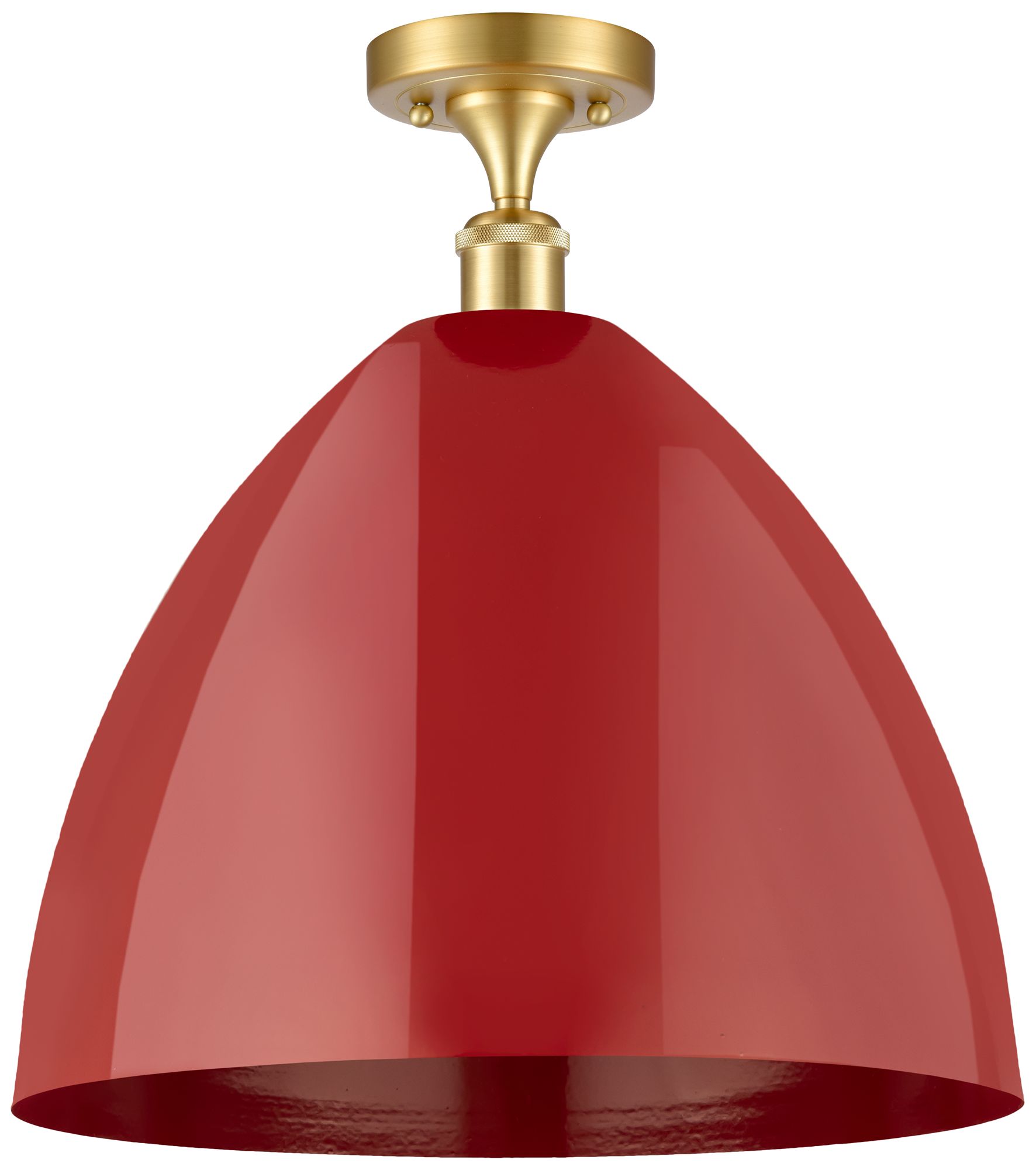 Plymouth Dome 16" Wide Satin Gold Semi Flush Mount w/ Red Shade