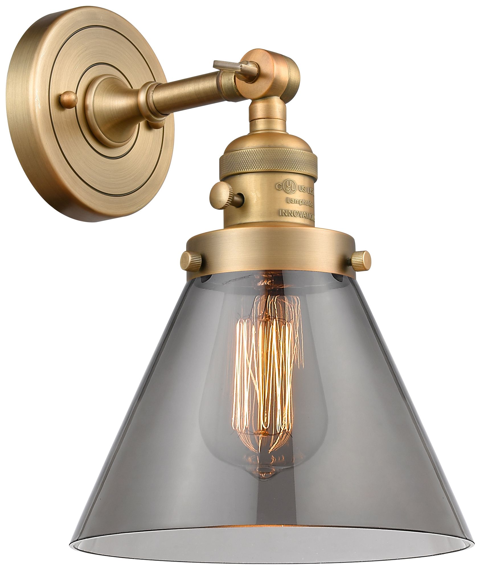 Cone 8" Brushed Brass Sconce w/ Plated Smoke Shade