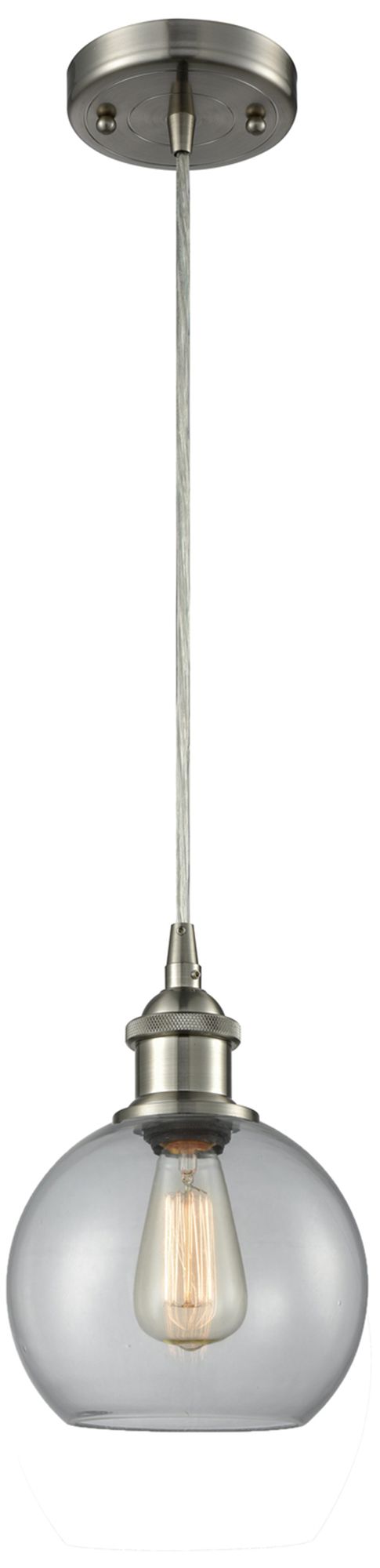 Ballston Athens 8"W Cord Hung Satin Nickel Mini Pendant w/ Clear Shade