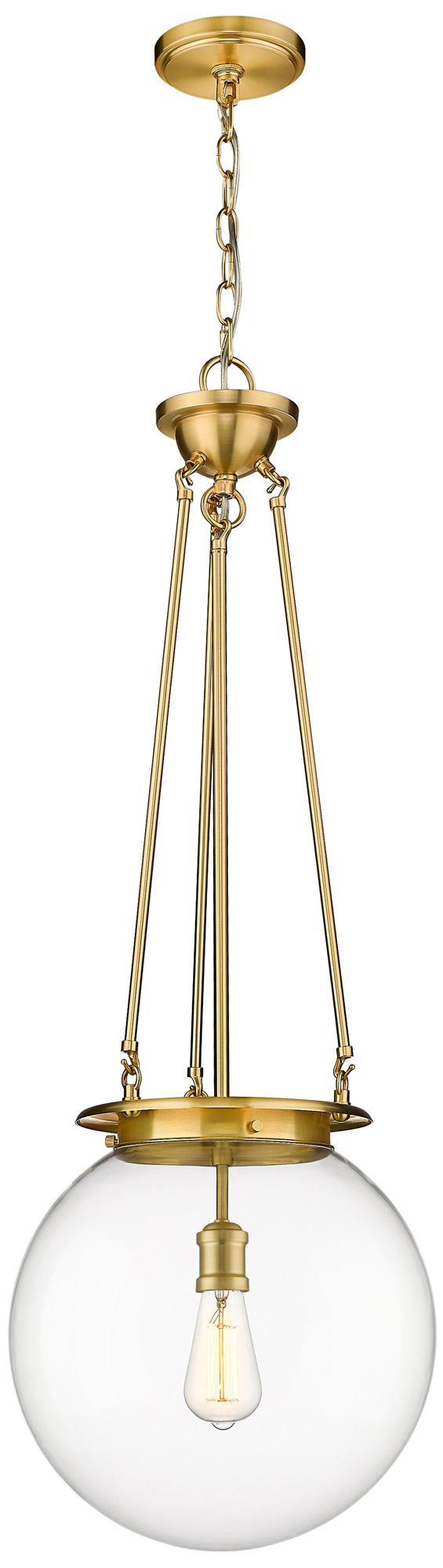Beacon 14" Wide Satin Gold Pendant With Clear Glass Shade