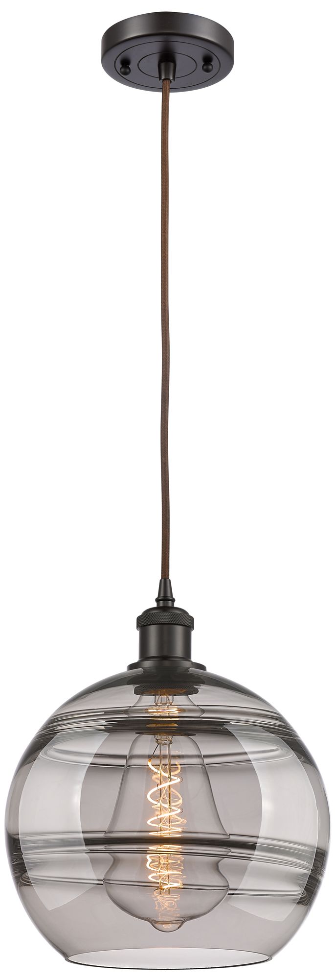 Ballston Rochester 10"W Oiled Bronze Corded Mini Pendant w/ Smoke Shad