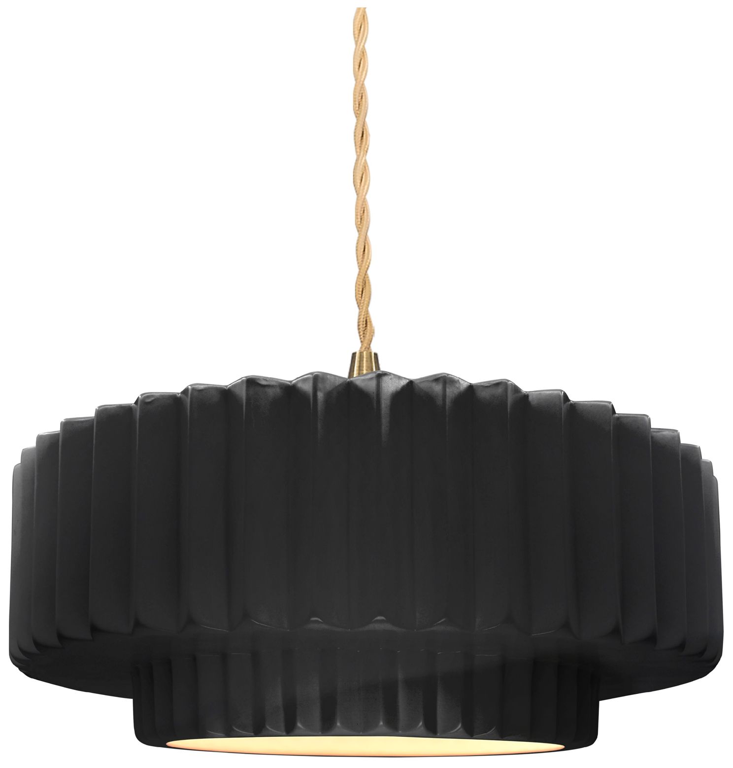 14.5"W Gloss Black/White Frame Brushed Brass Tier Pleated Twisted Pend