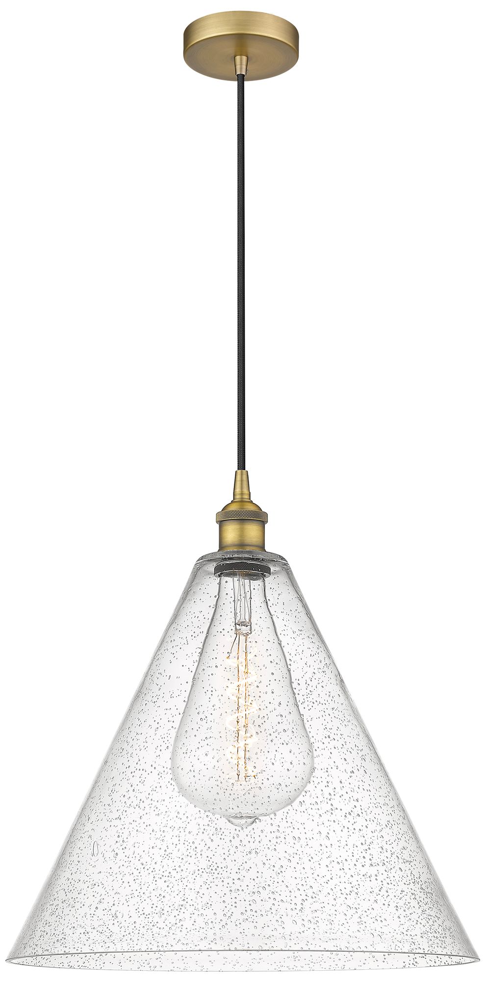Edison Cone 16" Brushed Brass Cord Hung Pendant w/ Seedy Shade