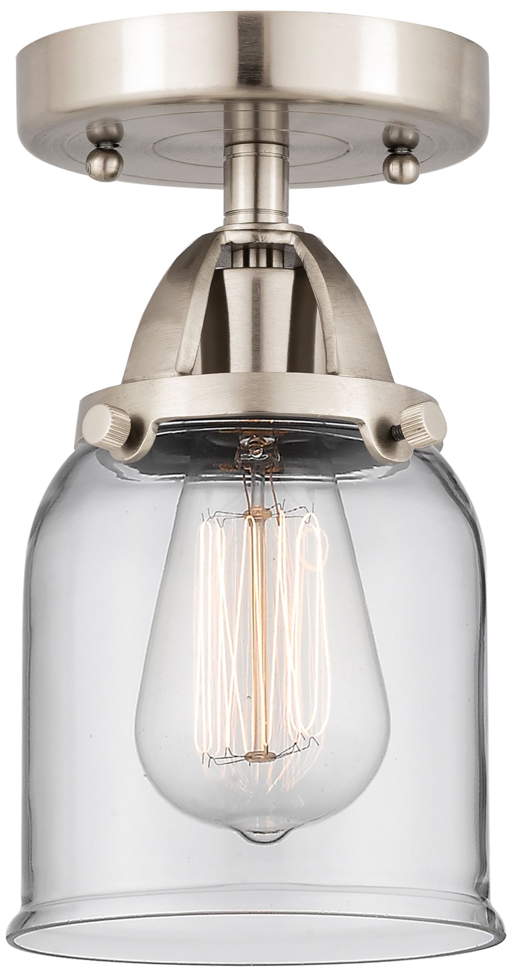 Nouveau 2 Bell 5" LED Semi-Flush Mount - Brushed Satin Nickel - Clear