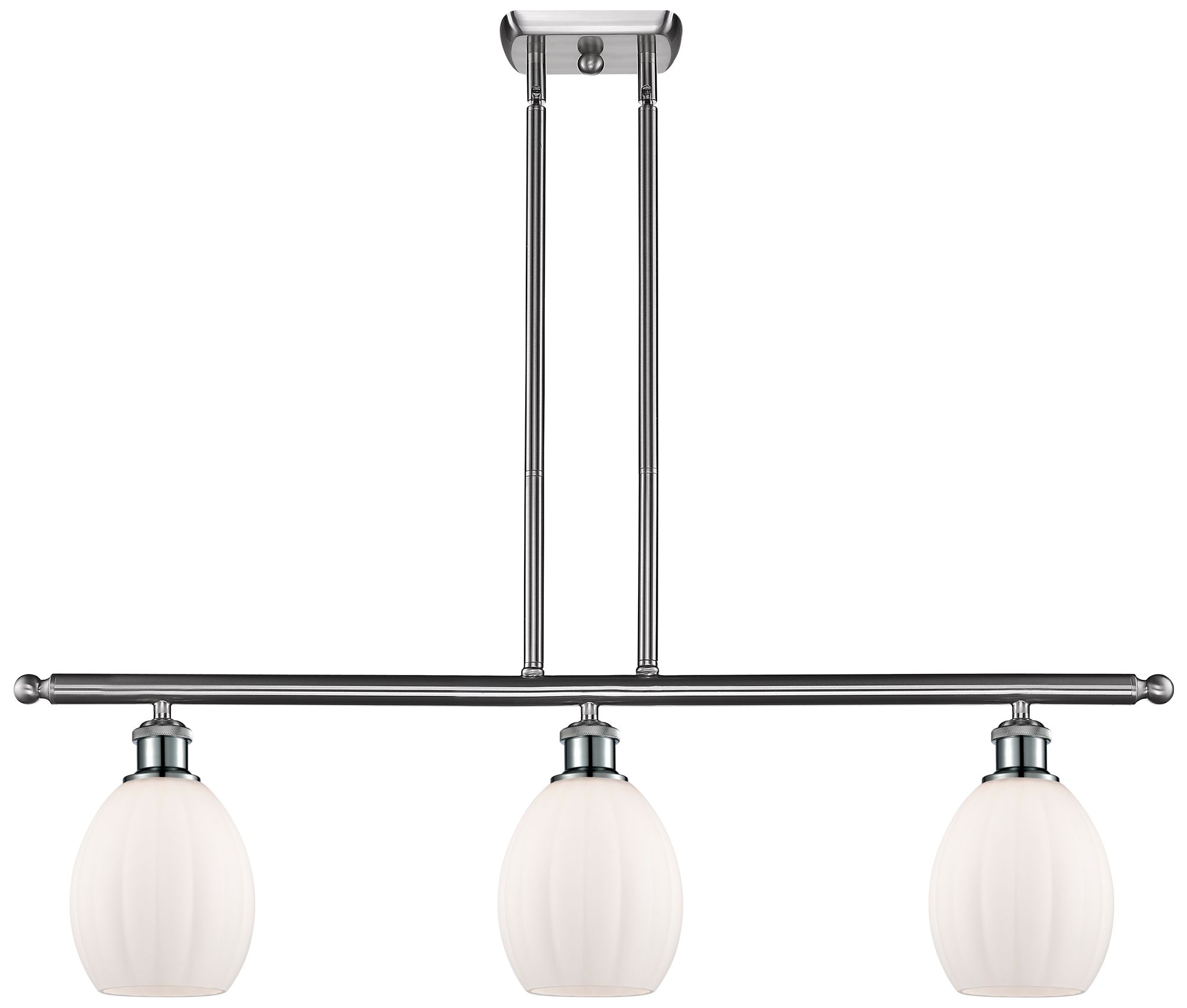Eaton 36"W 3 Light Brushed Nickel Stem Hung Island Light w/ White Shad