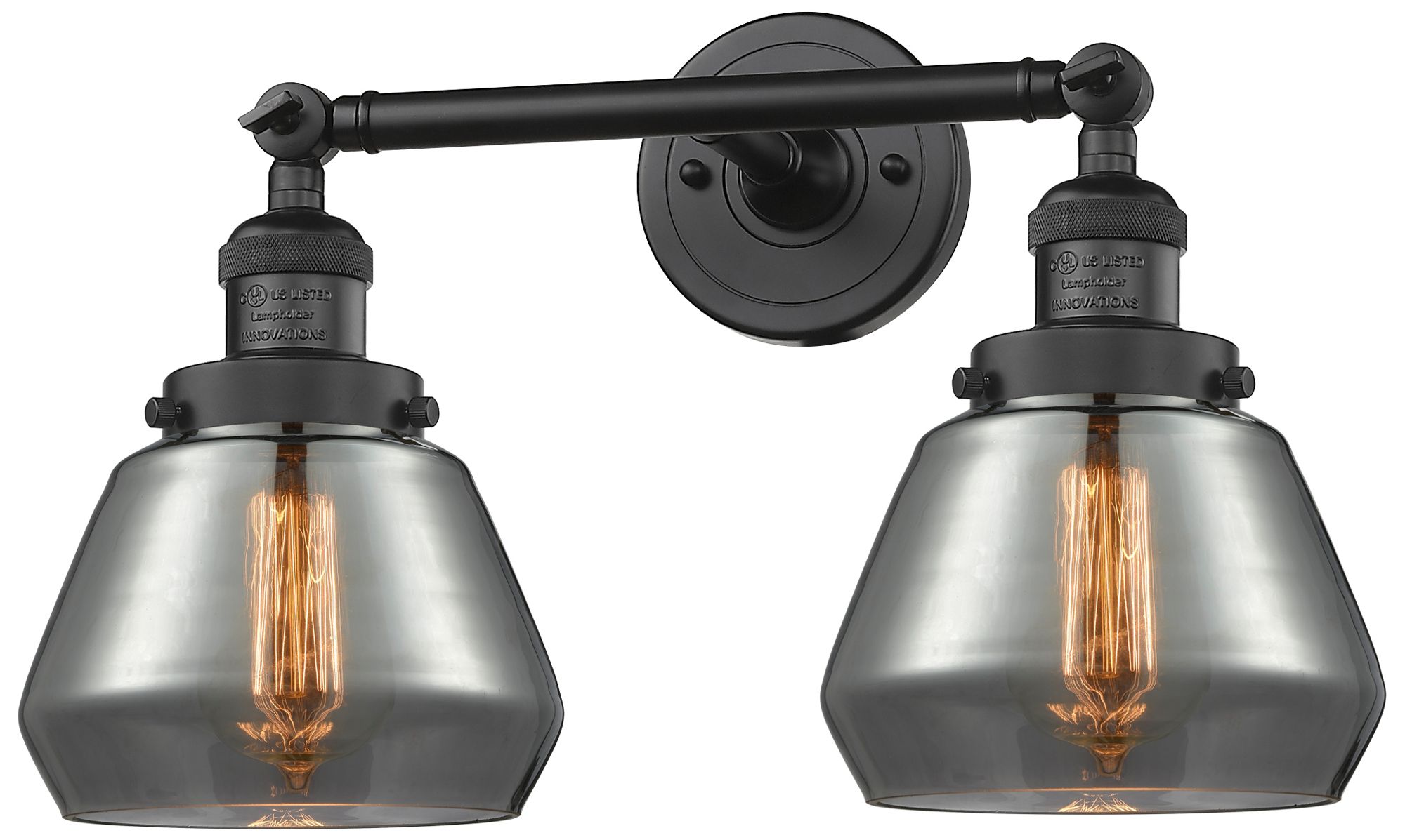 Fulton 16.5"W 2 Light Matte Black Bath Vanity Light w/ Plated Smoke Sh