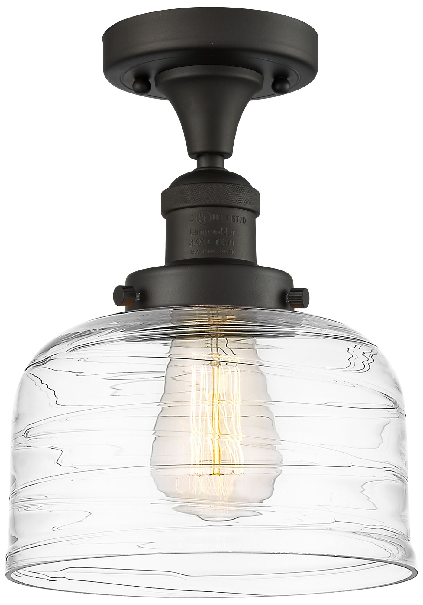 Bell 8" Semi-Flush Mount - Oil Rubbed Bronze - Clear Deco Swirl Shade