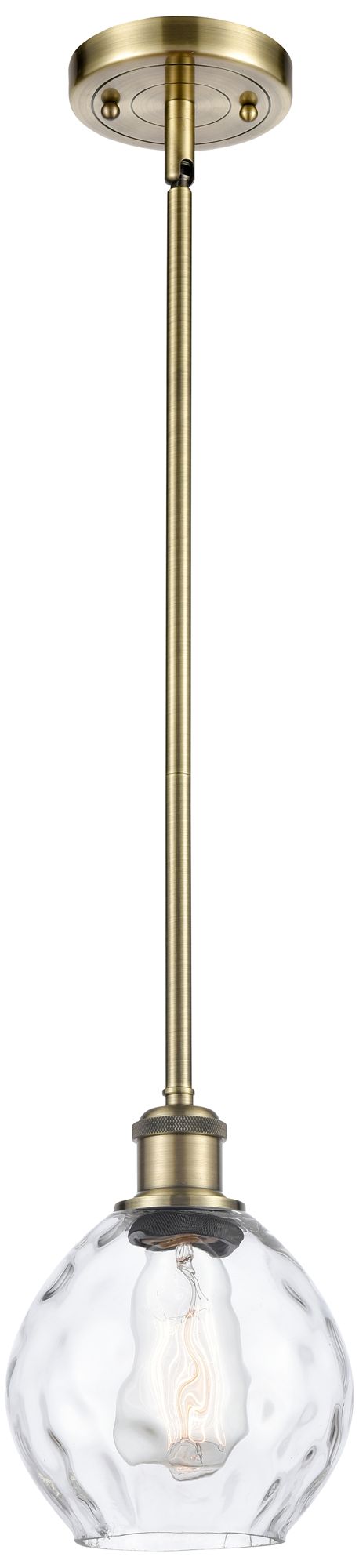 Waverly 6" Wide Antique Brass Stem Hung Mini Pendant w/ Clear Shade
