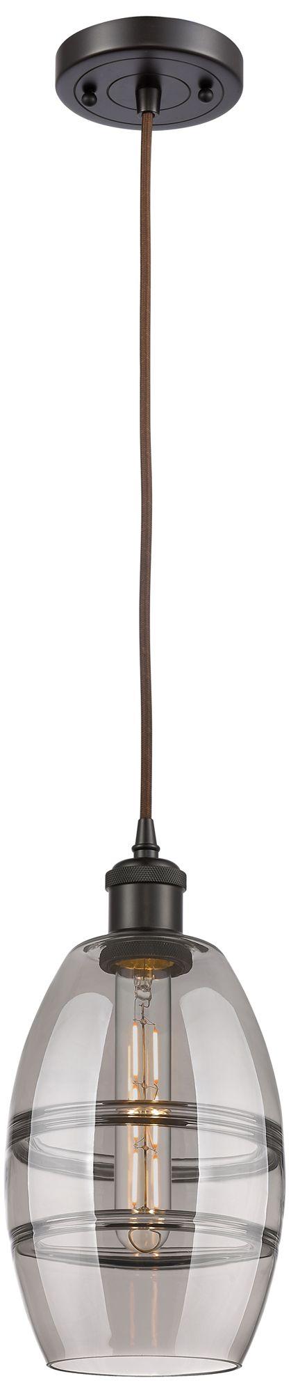 Ballston Vaz 5.88"W Oiled Bronze Corded Mini Pendant w/ Light Smoke Sh