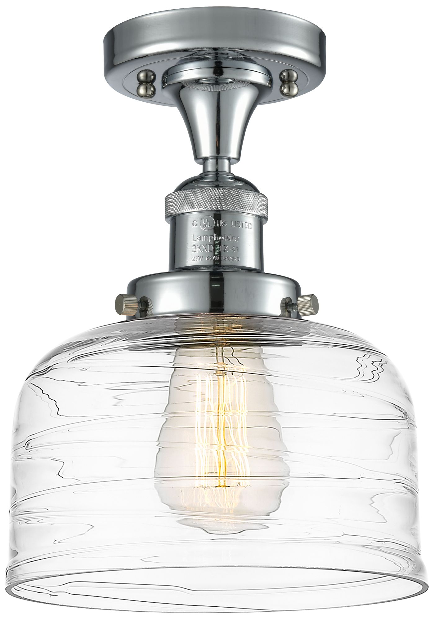 Bell 8" Semi-Flush Mount - Polished Chrome - Clear Deco Swirl Shade