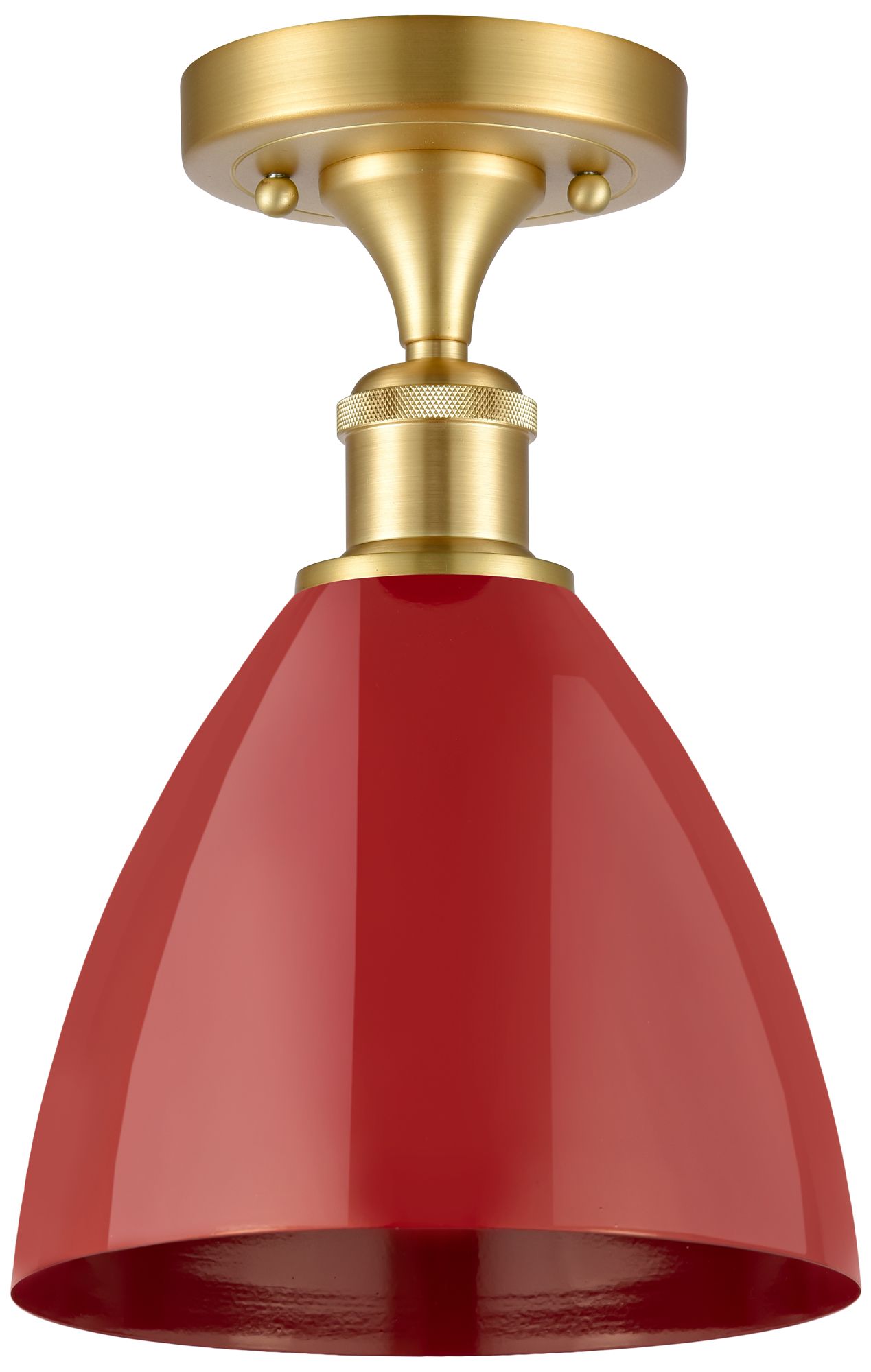 Plymouth Dome 7.5" Wide Satin Gold Semi Flush Mount w/ Red Shade