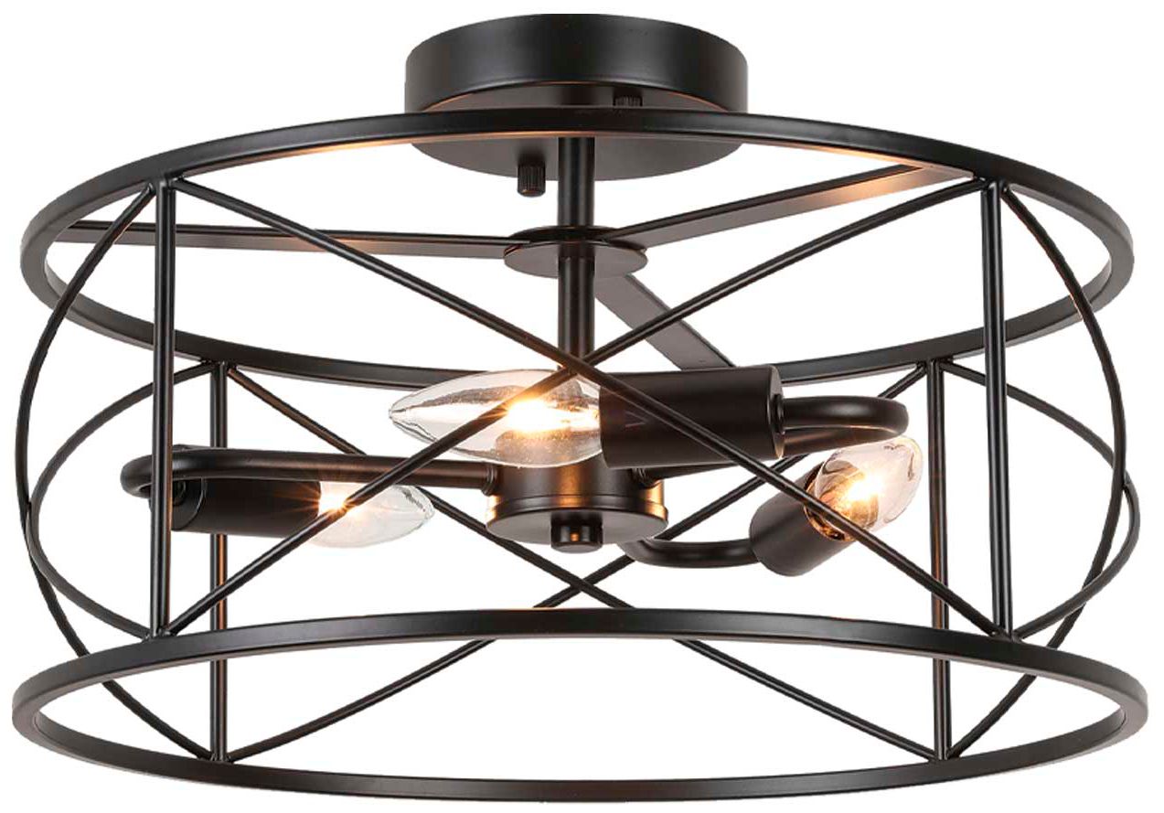 Calah 15" Wide 3 Light Matte Black Semi.Flush Mount