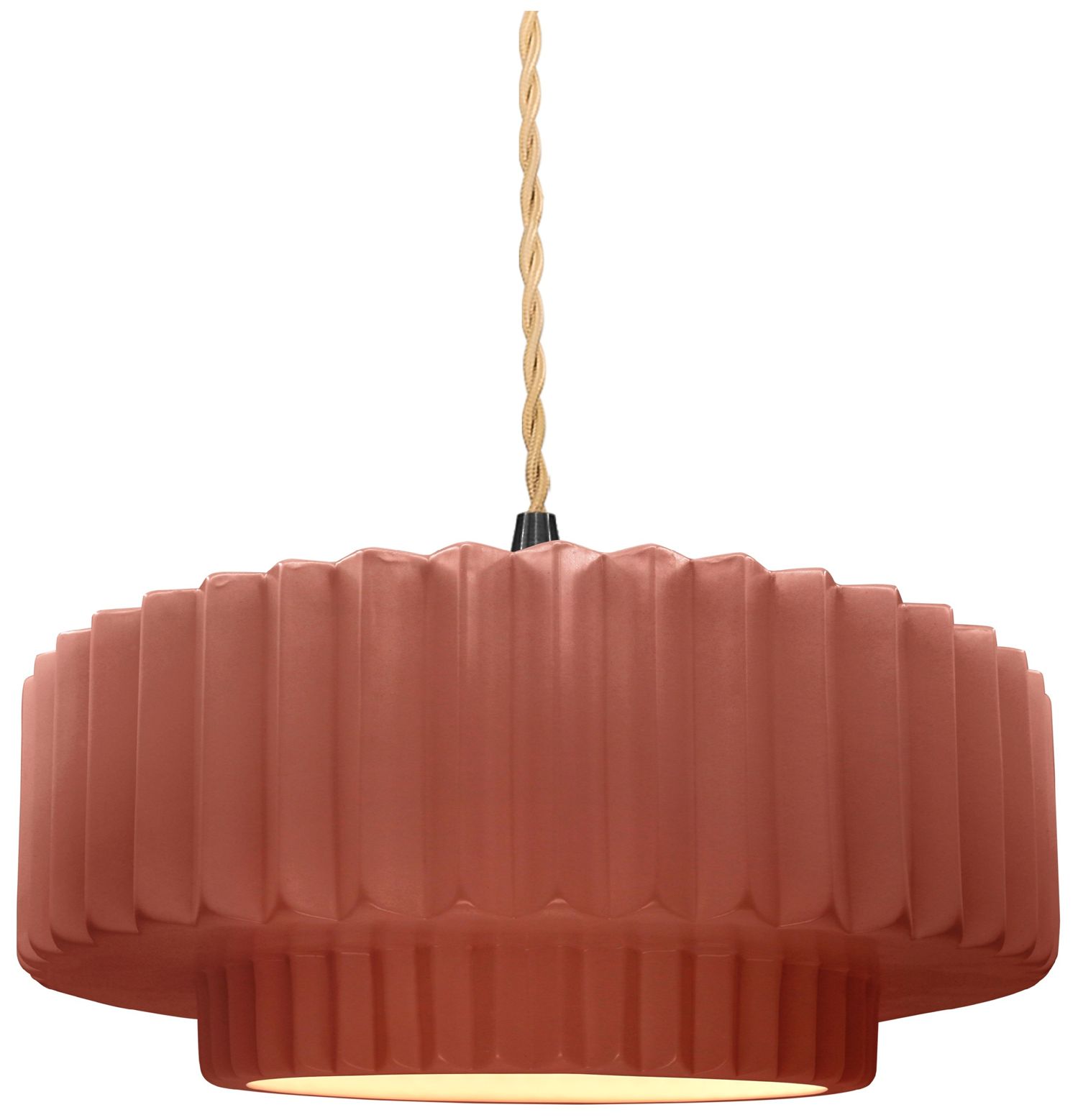 Radiance 14.5"W Clay Frame Matte Black Tier Pleated Beige Twisted Pend