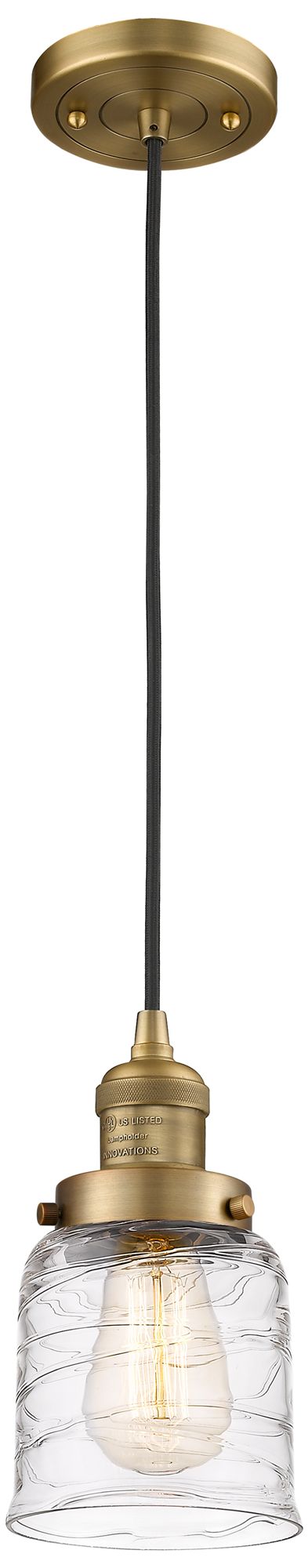 Franklin Bell 5" Brushed Brass Corded Mini Pendant w/ Deco Shade