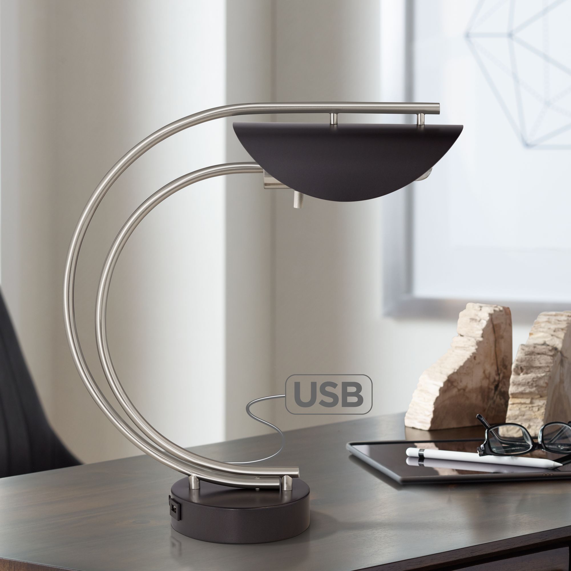 Volero Nickel and Gunmetal Desk Lamp with USB Port