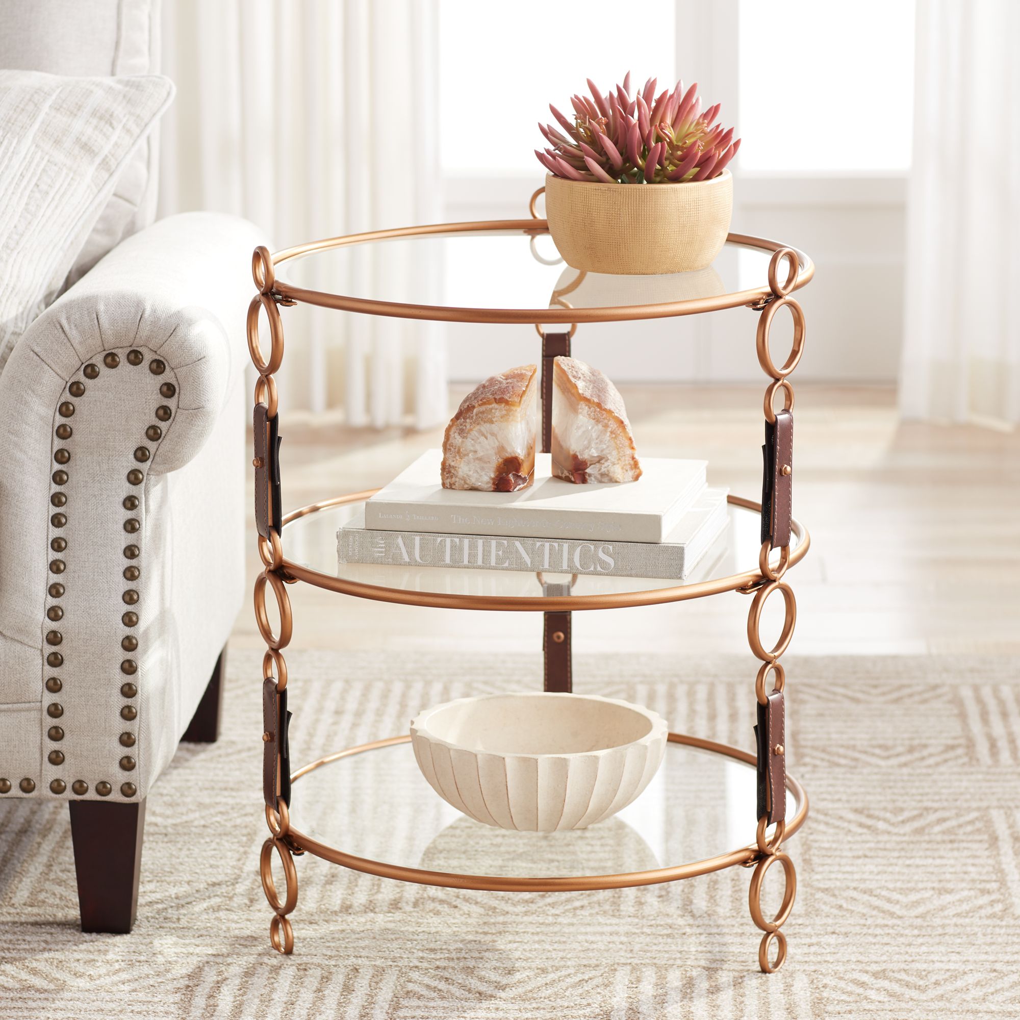 Winchester 22 1/2" Gold and Faux Leather 3-Tier Glass Accent Table