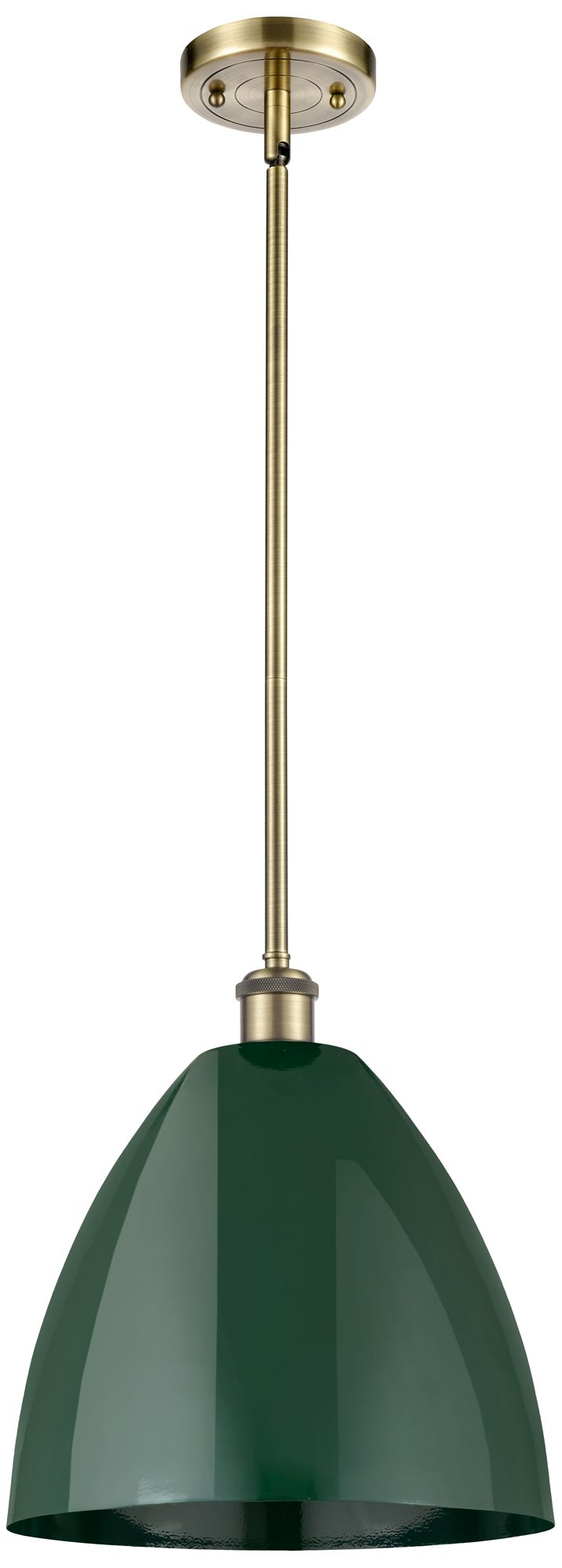 Plymouth Dome 12" Wide Antique Brass Stem Hung Pendant w/ Green Shade