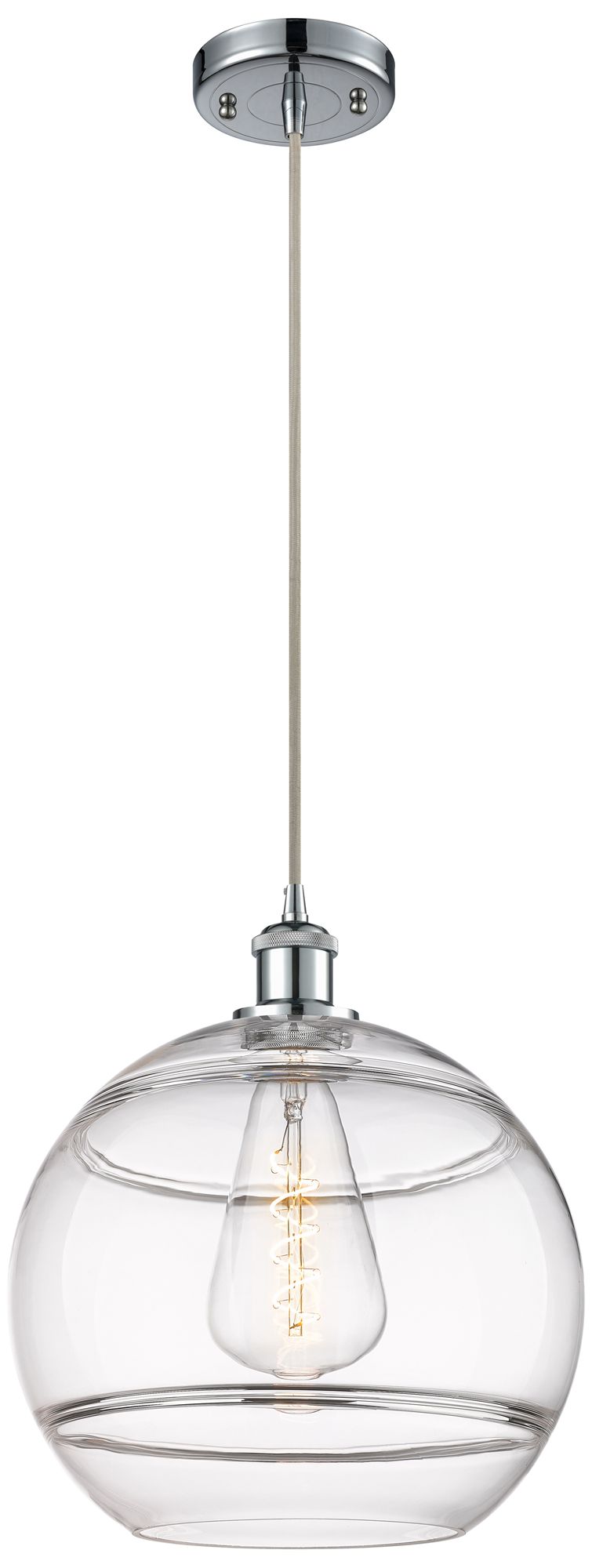 Ballston Rochester 12"W Polished Chrome Corded Mini Pendant w/ Clear S