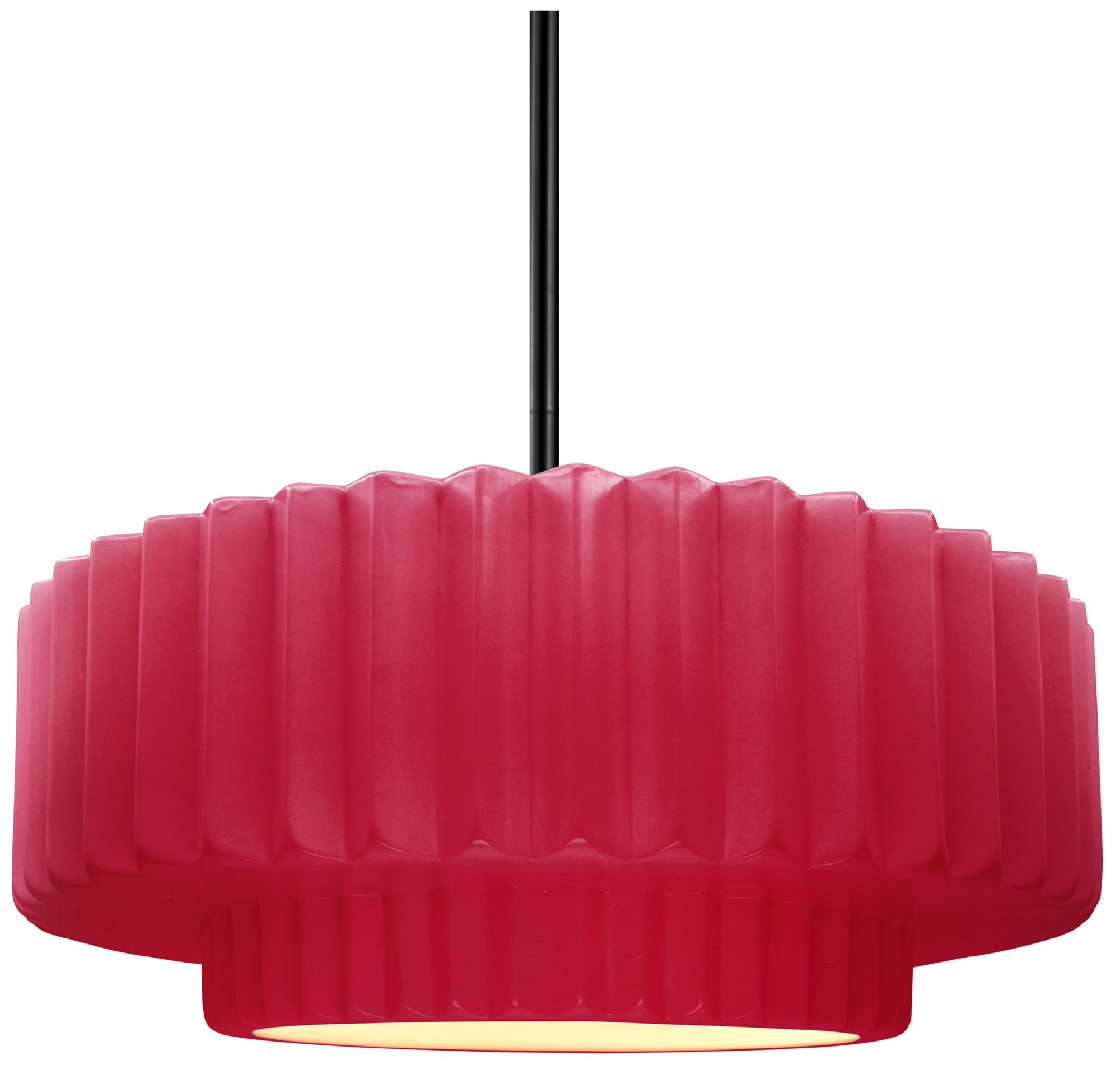 14.5"W Cerise Frame Matte Black Tier Pleated Rigid Stem Kit Pendant