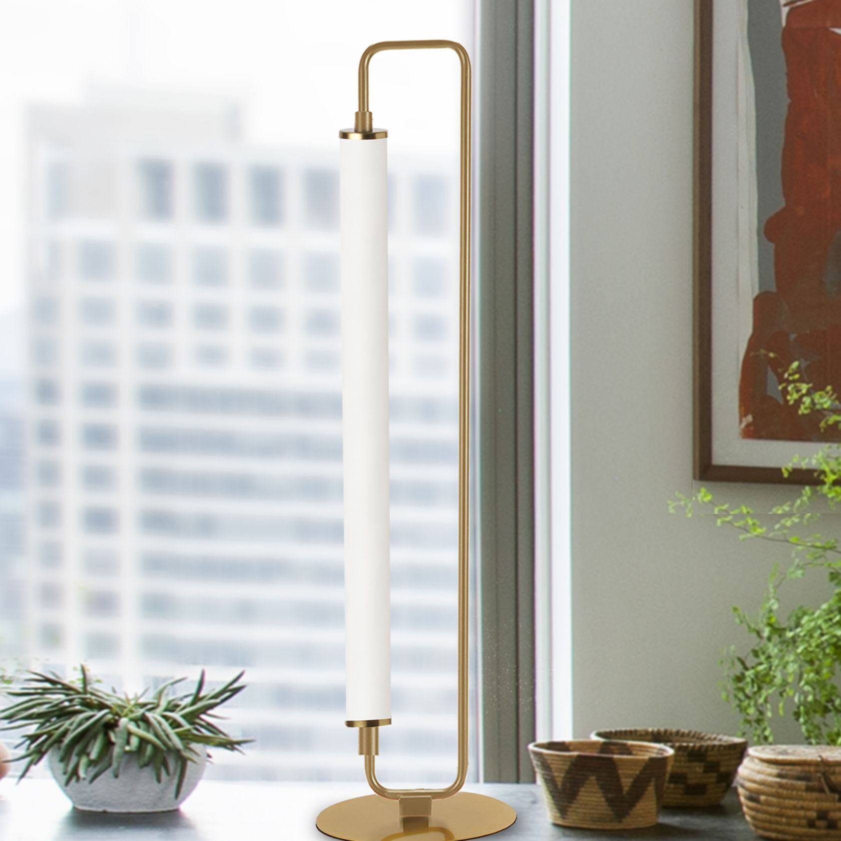 Freya 26.5" High Aged Brass LED Table Lamp With White Acrylic Shade