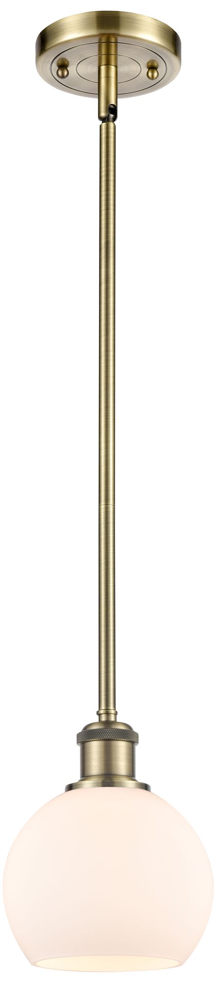Athens 6"W Stem Hung Antique Brass Mini Pendant w/ White Shade