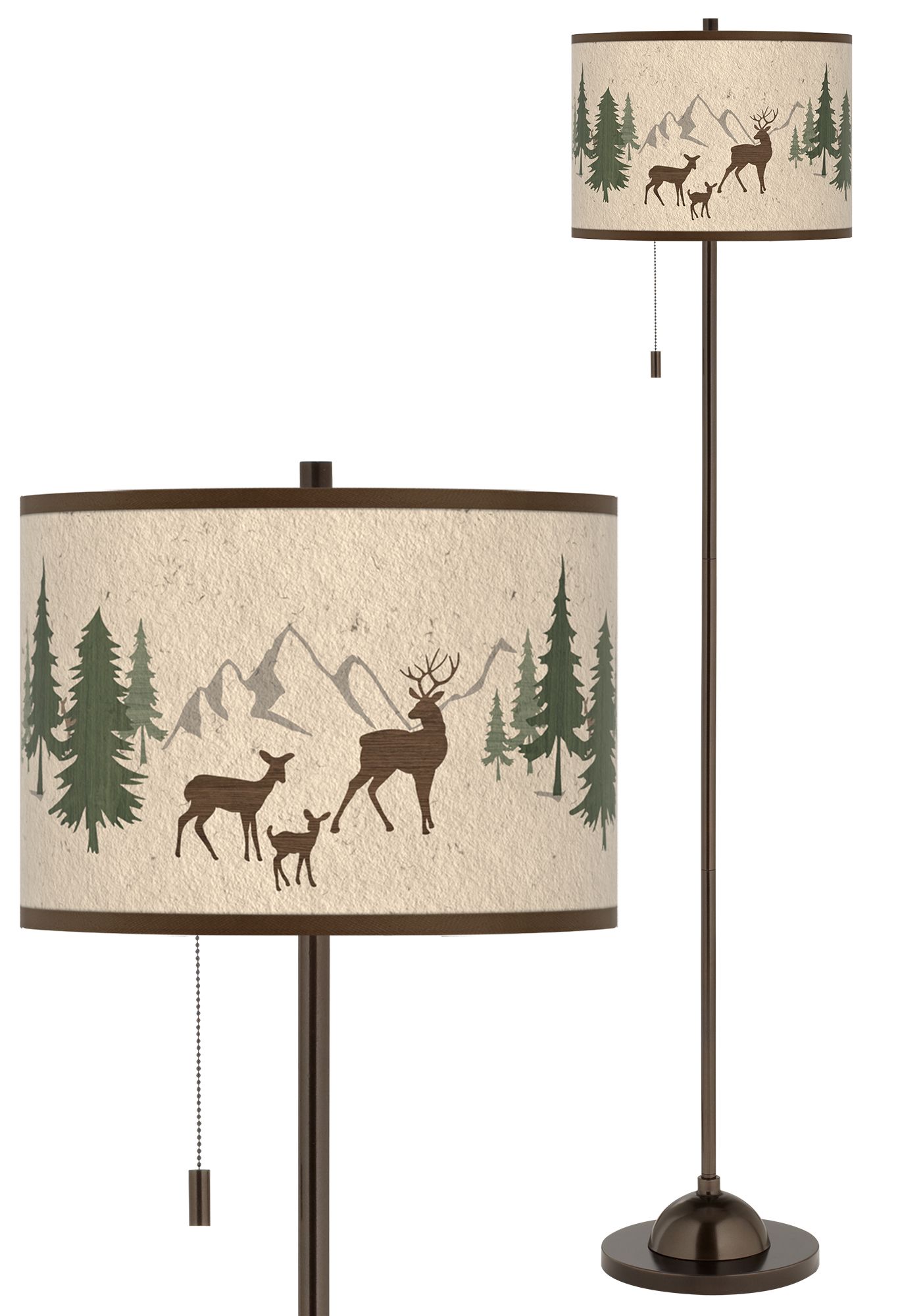 Giclee Glow 62" Deer Lodge Shade Rustic Bronze Club Floor Lamp
