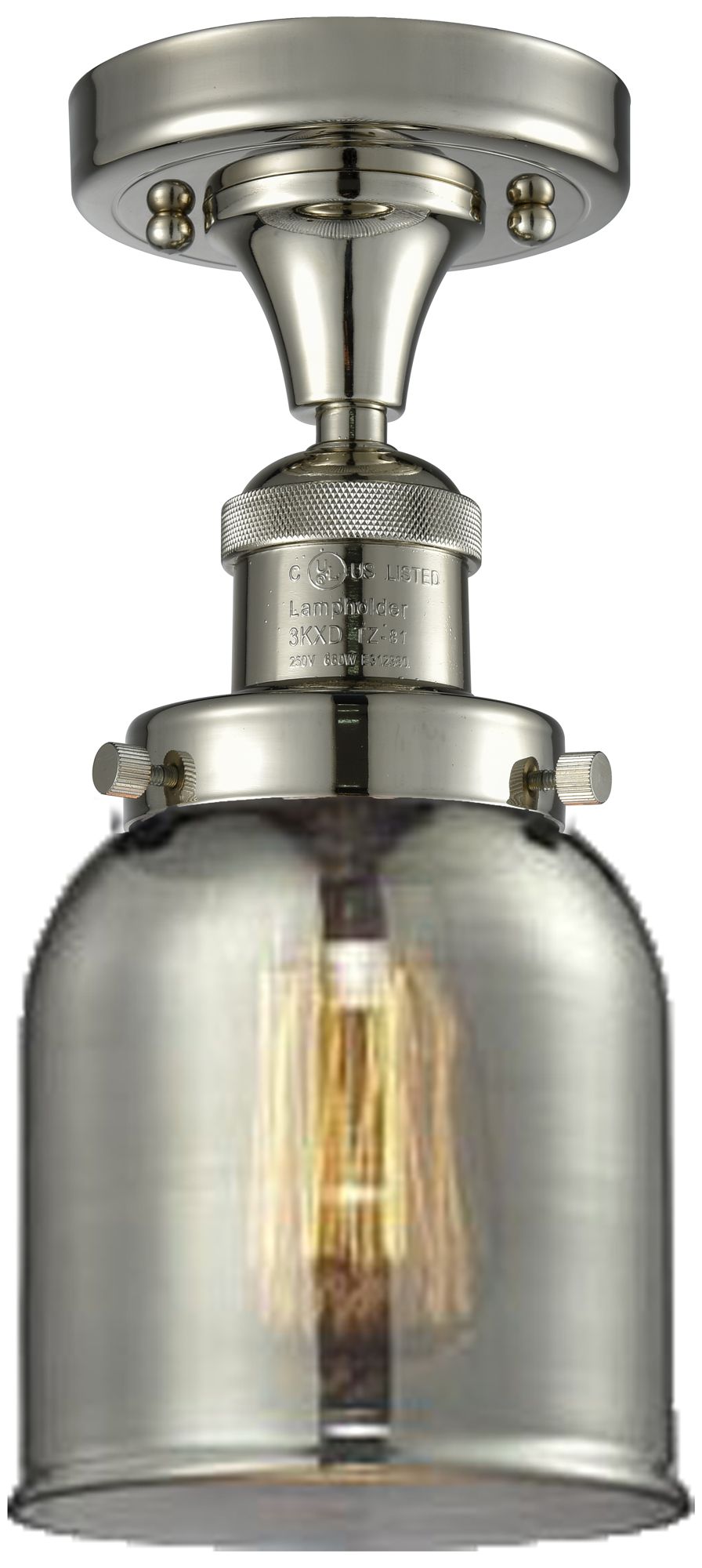 Bell 5" Wide Polished Nickel Semi Flush Mount w/ Plated Smoke Shade