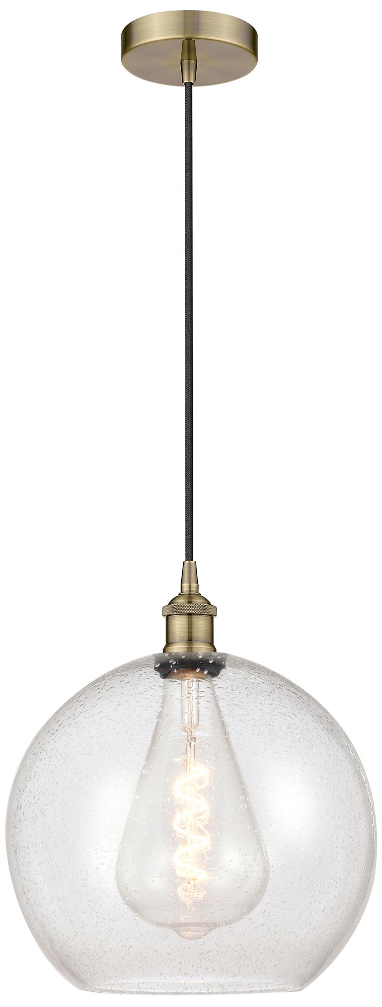 Athens 12" Antique Brass Mini Pendant w/ Seedy Shade