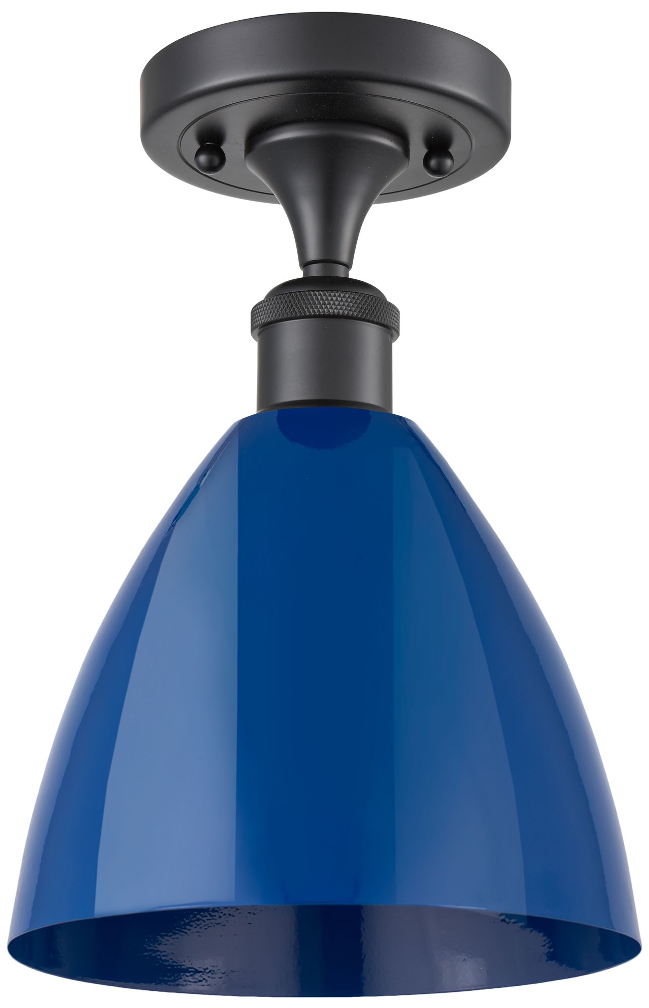 Plymouth Dome 7.5" Wide Matte Black Semi Flush Mount w/ Blue Shade