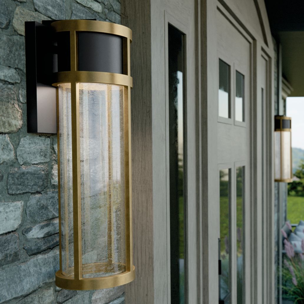 Camillo 20"H Textured Black and Brass LED Outdoor Wall Light