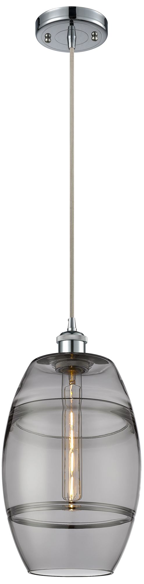 Ballston Vaz 8"W Polished Chrome Corded Mini Pendant w/ Light Smoke Sh