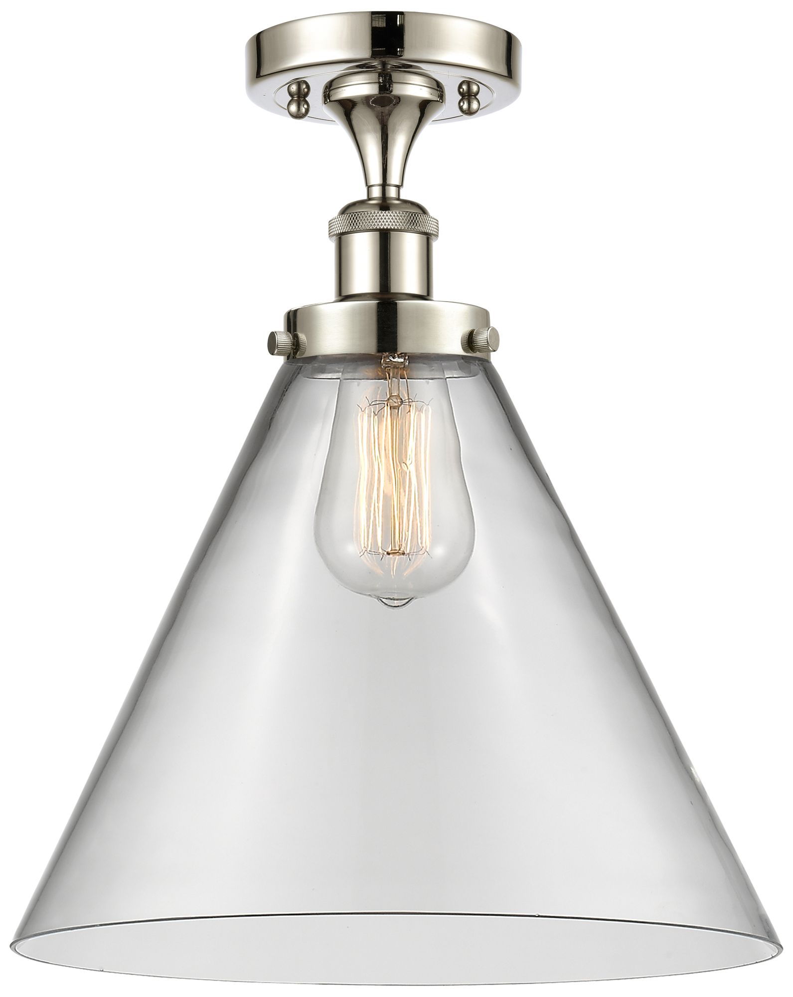 Ballston Urban Cone 12" Semi-Flush Mount - Polished Nickel - Clear Sh