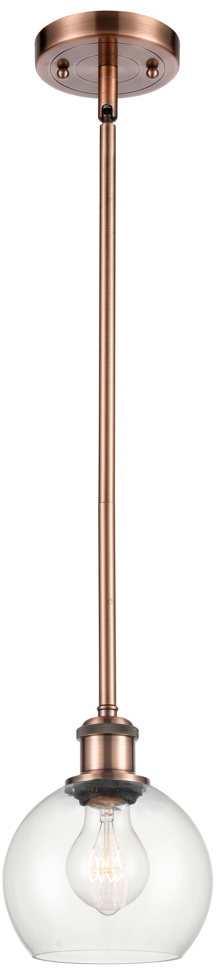 Athens 6" LED Mini Pendant - Antique Copper - Clear Shade