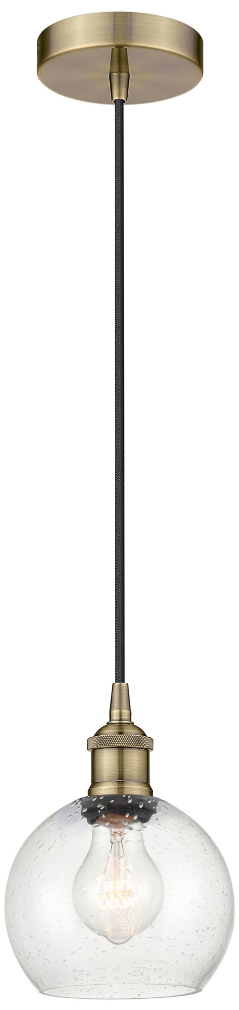 Athens 6" Antique Brass Mini Pendant w/ Seedy Shade