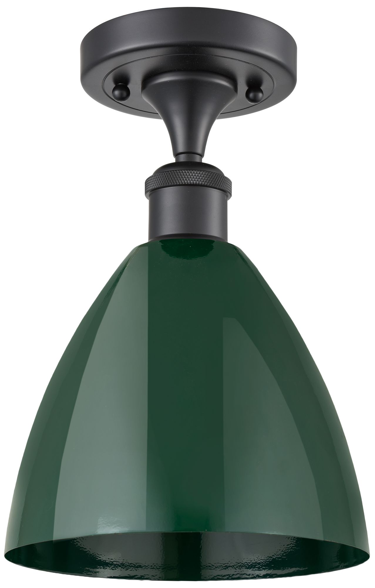 Plymouth Dome 7.5" Wide Matte Black Semi Flush Mount w/ Green Shade