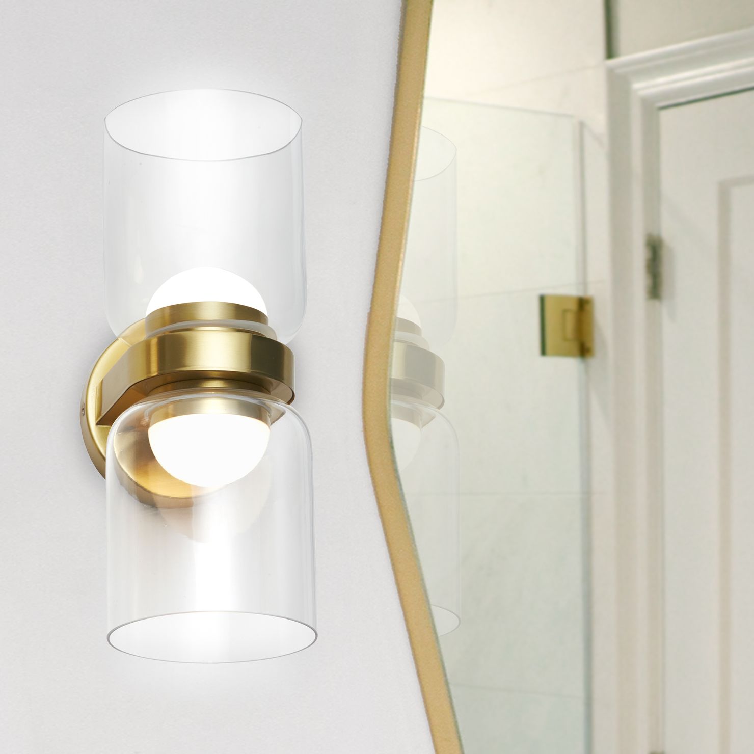 Nadine 12" High 2 Light Aged Brass 20W LED Sconce With Clear Glass Sha