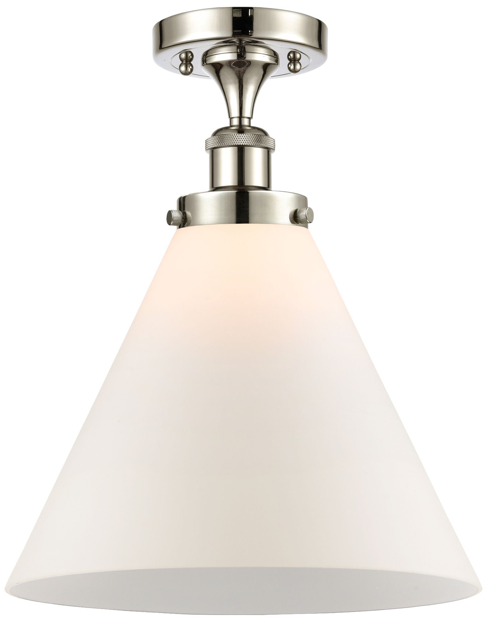 Ballston Urban Cone 12" Semi-Flush Mount - Polished Nickel - Matte Wh